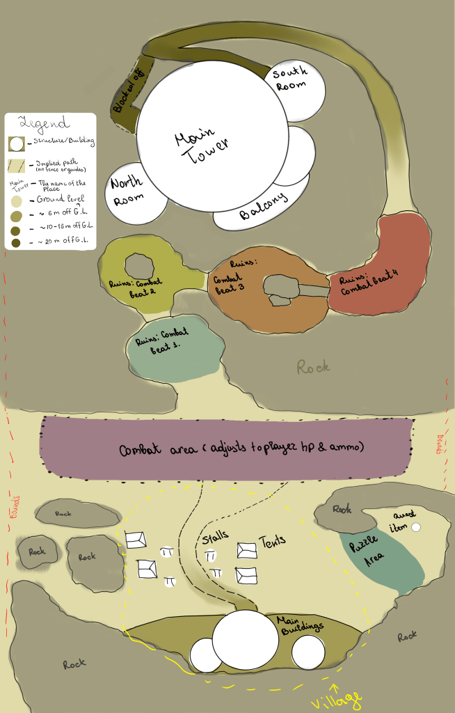 - Built blockouts to test space sizes, pacing, and guidance for the player.