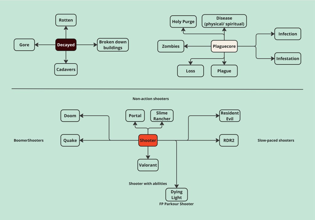 - Researched level design references for cathedral environments and zombie shooter mechanics to establish visual and gameplay direction